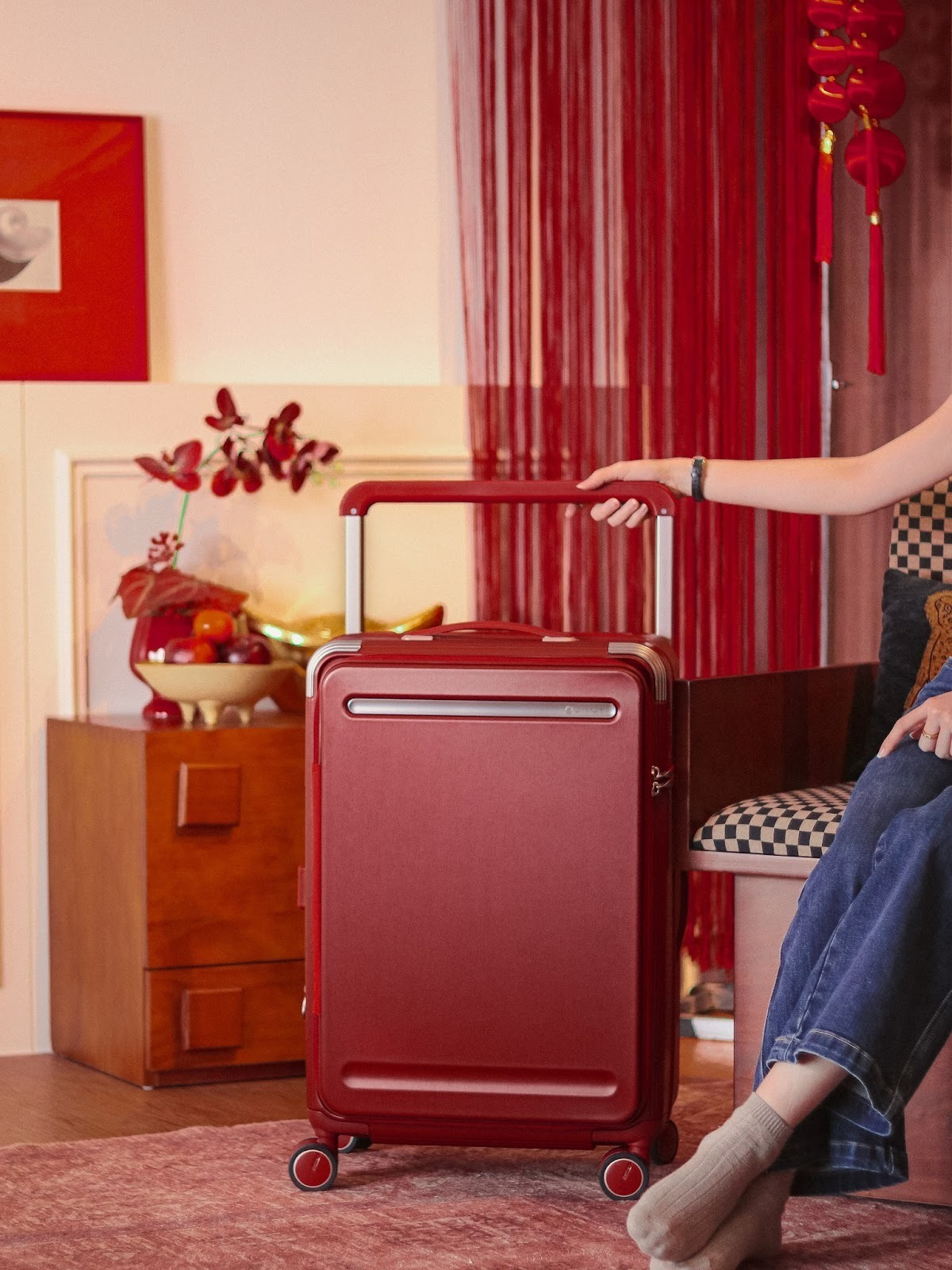 Another underrated feature to free your hands? The smart tray top design, with a slightly lowered flat nook to hold your essentials. While it may not seem like much initially, you’ll soon realise how practical it is. For instance, you could set down your passport, boarding pass, and phone while checking in, or place your coffee and laptop on it during a quick work stop at the airport. It even comes in handy as a mini surface for your books or tablet while waiting at the gate. It’s these small but thoughtful details that make travelling feel that much more effortless.