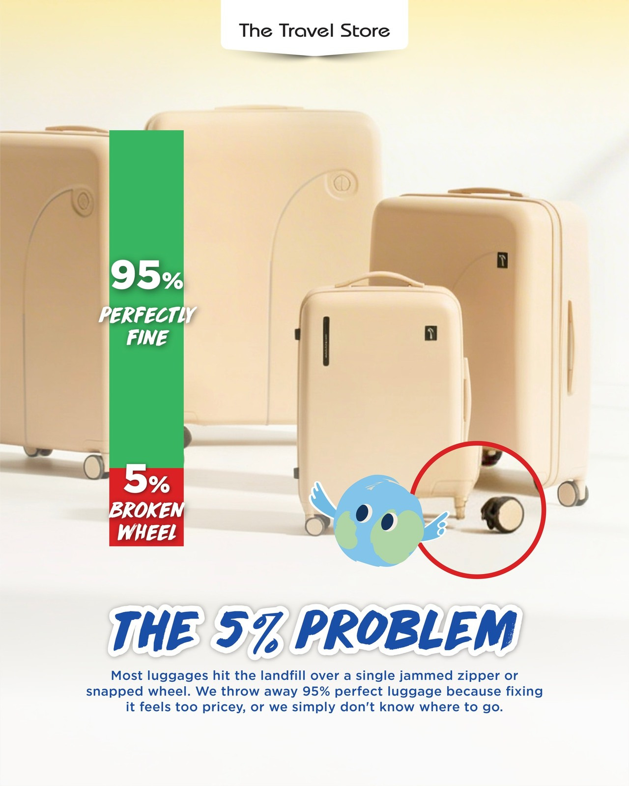 It also reflects the second part of The Travel Store’s 3R message: Restore. Sometimes giving a suitcase a second chance is all it takes to keep it useful for years longer.