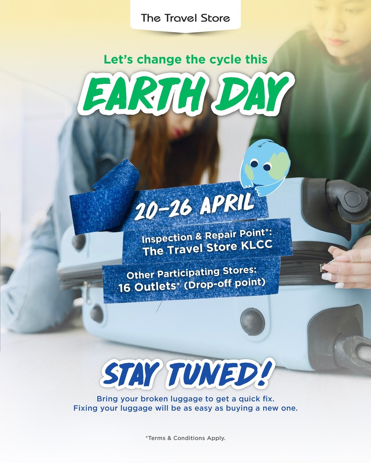 From 20 to 26 April 2026, The Travel Store Earth Day Campaign 2026 at Suria KLCC is inviting people to think twice before throwing luggage away. As part of The Travel Store’s yearly Earth Day campaign, this year’s edition brings its 3R message, Respect, Restore, and Reimagine, to life in a very practical way. There’s an RM20 flat-rate repair offer for all luggage brands, which makes it a really easy starting point if you’ve been putting off a fix. The campaign also features an upcycled whale-shaped carabiner made from PP luggage shells, which is a nice little reminder that old materials can still be turned into something useful.