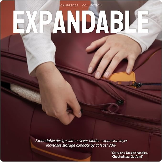 One of the biggest advantages of soft-side luggage is its flexibility. The fabric structure allows the suitcase to stretch and expand, thus giving you extra room for last-minute purchases or souvenirs, or simply to fit irregular-shaped items. Similarly, Verage Cambridge has a soft polyester fabric and even features a zippered expansion system that adds up to 2 inches (5cm) of extra packing space, which is always welcome on any return trip!
